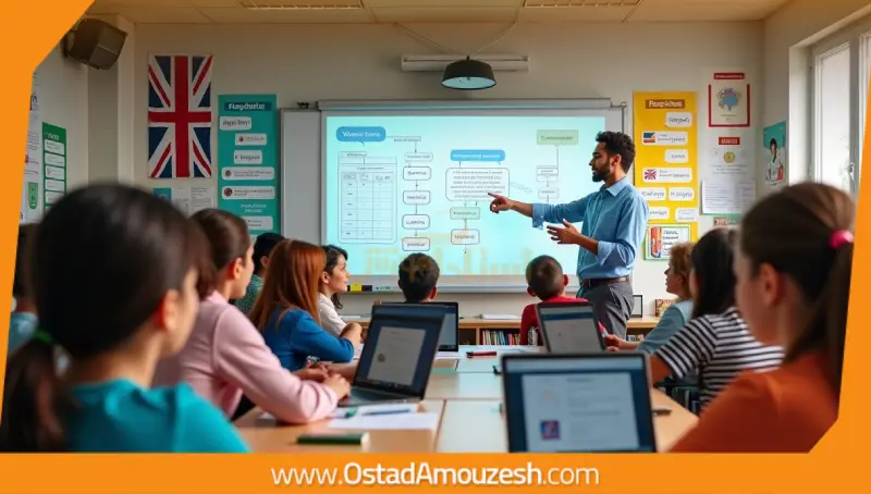 4. تماشای فعال: بعد از هر صحنه، مکث کنید و درباره داستان بحث کنید. این کار در تدریس زبان انگلیسی آنلاین در سایت استاد آموزش با مربیان گروهی مؤثر است.